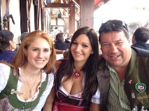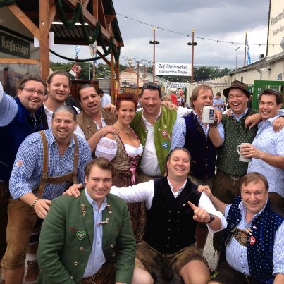 Der Himmel erstrahlt im bayrischen weiß-blau. Der Trachtenumzug findet fast vor meine Haustür statt und ich begebe mich gut gelaunt in die Box 7. Meine heutigen Gäste sind auch schon unterwegs (dank Facebook weiß ich ja (fast) über alles Bescheid J. Gerhard und ich müssen auch nicht lange auf die ersten Besucher warten – Dieter, Walter, und Wiesnjungfrau Pauli (hat bis heuer große Angst vor dieser einzigartigen Party gehabt – und diese endlich überwunden….. J ) Zum Mittagessen ist auch meine Familie (Claudia, Sophie & Alex) eingetroffen, Flo kann heuer aus schultechnischen Gründen leider nicht dabei sein) Reini & Petra mit einer Abordnung aus Solingen sind auch mit von der Partie. Am Nebentisch waren Charly Wilhelm mit seiner Himberger Runde und die Wiesnjungfraun Fritz mit Freunden aus dem Burgenland.