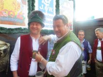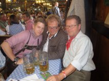 In der Box treffe ich dann auf Stefan, Michi, Alois und Konsorten aus Amstetten – 8 Wiesnjungfraun – sehr brav und Potenzial nach oben ist offen. Auch Matthias aus Kassel ist da – habe ihn auf unsere Silberhochzeitsreise in Sylt kennen gelernt – und heute ist er mein Wiesnbegleiter. Auf ein Sprüngerl kommt auch noch Horst und seine Gattin aus B’hofen vorbei – weil`s aber so gemütlich ist – bleiben die beiden fast 3 Stunden!