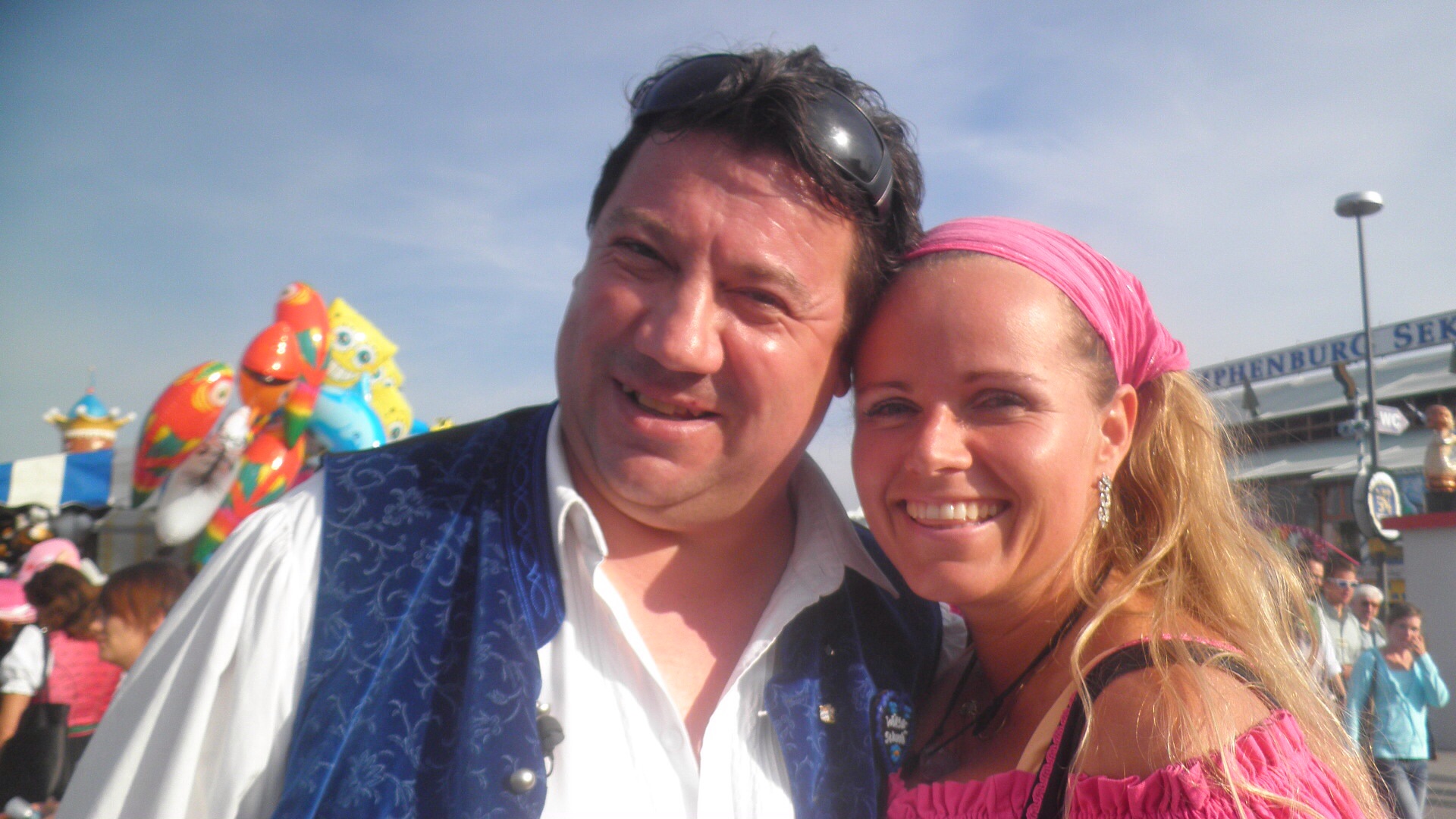 …aufgrund der perfekten Wettersituation habe ich schon richtig Farbe in meinem Traumurlaub bekommen – schau aus wie das blühende Leben (und so fühl ich mich auch). Heute herrscht großer Andrang in der Box 7, Spritzi aus Wr. Neustadt mit 10 Freunden ist schon da, meine treuen Wiesnbesucher – die Innung, Bruder Thompson mit seiner Partnerin Anne im stacheligen Outfit, Vater Otto mit Brigitte – die sich sehr über mein Willkommensgeschenk (Herzerl der besonderen Art – von der Herzerlwerkstatt) gefreut haben. Schweizer Freunde unter Leitung von Karli – mit denen ich heuer schon das neue Jahr gemeinsam begrüßt habe, Reini die Ratte mit seiner Petra – ebenfalls immer gern gesehen. Heute begleitet mich Tobias (Volonteur von Bayern1) – einen Tag mit dem Wiesnschurli. Gemeinsam mit den Freunden der Innung, Klaus Stolzenberger und den Schweizern wechsel ich in die Ochsenbraterei wo, wie vereinbart das Kamerateam von Brisant (ARD) auf mich wartet – der Dreh kann beginnen… das soll aber nicht der einzige des heutigen Tages bleiben, gleich drauf erscheint das Bayrische Fernsehteam mit der Star Moderatorin Uschi Dämmrich von Luttiz und wir drehen ein Interview im Riesenrad (zu sehen am 27.09.2011 ab ca. 16.00 Uhr im Bayrischen Fernsehen – Namen der Sendung: Wir in Bayern). Glück ist eine Frage der Organisation – und so bin ich pünktlich um 17.00 Uhr – wie jeden Tag im Weinzelt zum Einzug der Blechblos’n live dabei. Da erreicht mit ein Anruf –ich soll dringend in die Box 8 kommen – mein Freund Walter Delle Karth ist da in Begleitung von Patrick Riml (USA Alpin Programm Direktor aus Sölden) mit seinen Eltern – habe mich lange mit ihnen unterhalten – und nebenbei das Amsel-Trio (Heidi, Silvia und Julia) – die auch zufällig in der Box 8 waren geherzt und gebusslt. So nun aber ab auf die Bühne denn das Fliegerlied will performt werden. Alle sind sehr zufrieden mit meinem Auftritt – und die Autogrammjäger warten schon an der Treppe…abends war ich dann nochmals in der Box 8 diesmal bei Reini und seiner Angi und verbringen ein paar schöne Stunden gemeinsam. Sehr stolz bin ich auf die Schweizer die bis zum Schluss aushielten – und gemeinsam freuen wir uns auf den morgigen Wiesntag.