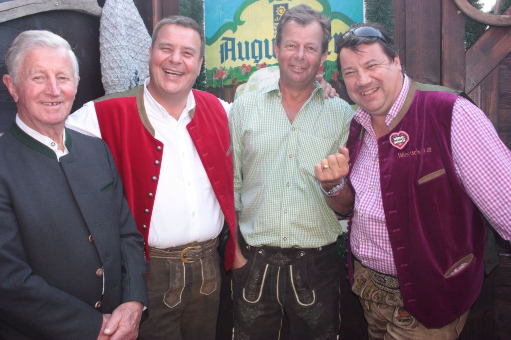 Der Altweibersommer gepaart mit dem Wiesnbonus macht das perfekte Wienswetter. In der Box7 treffe ich Hosen-Stefan mit Besuch aus Spanien – Kodym Hubert, der mit seiner Firma (Estrich) einen Betriebsausflug macht – und ich ihm in Obertauern in meiner unendlichen Güte einen Tisch im Augustiner zugesagt habe. Hosen-Stefan, die 4 Spanier, Gerhard und ich wechseln zum Mittagessen in die Ochsenbraterei – wo unsere Lieblingskellnerin Franziska schon auf uns wartet – und uns zum unserem Tisch geleitet. Das Essen schmeckt wiedermal ausgezeichnet. Später gesellen sich noch Birgit&Gregor (die auf der Wiesn ihren 2. Hochzeitstag feiern) und Katze zu uns – gemeinsam wechseln wir ins Hippodrom auf ein Gläschen Champagner. Das ehemalige Wiesnbrautpaar Heidi & Peter rocken die Champagnerbar und Heidi verrät mir, daß mich um das Foto mit Andreas Gabalier beneidet – dieser hat leider verabsäumt auch im Hippodrom sein Lied zu präsentieren. Auch Michi Steiner und Ferdinand sind richtig Happy im Hippo. Vorm Weinzelt wartet schon die ganze Meute auch mich: Kevin (der endlich privat mit Freunden die Wiesn besuchen kann und nicht von unzivilisierten Firmenbossen umgeben ist) Nina & Michi, Nico (Prinzi wird am Sonntag erwartet) und an dieser Stelle viele Bussis an die daheimgebliebene Lisi. Konstant Michi mit seinen 2 tollen Burschen Valentin und Fabian – die beiden können endlich die Wiesnschurli Autogrammkartensammlung auf den Letztstand bringen. Und bedanken sich nochmals, daß ich Ihnen geholfen habe Karten fürs Monika Gruber Kabarett zu bekommen. Gemeinsam ziehen wir ins Weinzelt – dort treffe ich Vivi Krupka – mit Sohn Laurenz (ehemaliger Schulfreund von meinem Wiesnprinz Florian). Alle gratulieren mit anschließend zum Auftritt beim Fliegerlied. Die Wiesnschurli – Karten sind heuer aufgrund der enormen Medienpräsenz der Renner – so viele habe ich während der 1. Wiesn-Woche noch nie verteilt. Herzlichen Dank nochmals einen meinen Freund für den Entwurf und die Ausarbeitung. Der übliche Wiesnausklang findet auch wieder an der Radio Gong Bar bei Mike & Alex statt.
