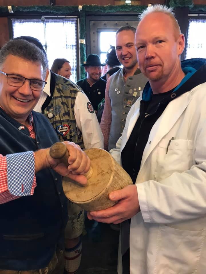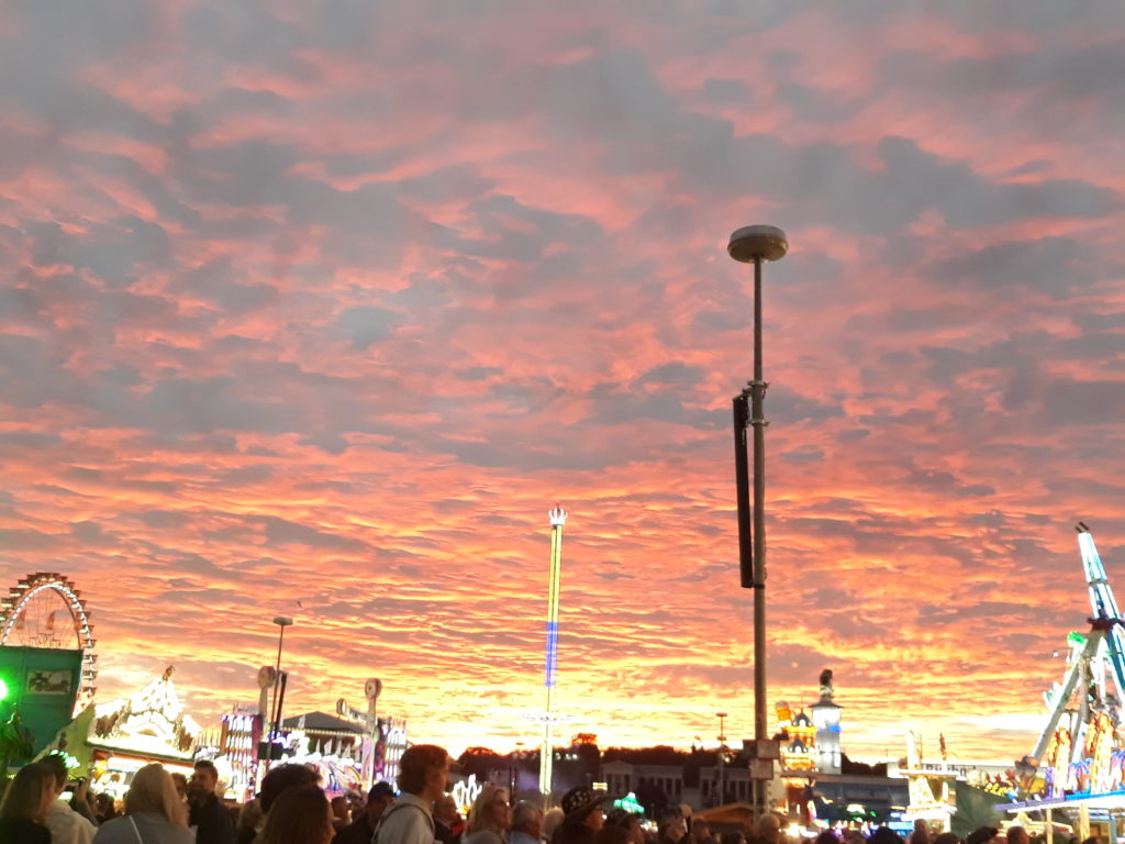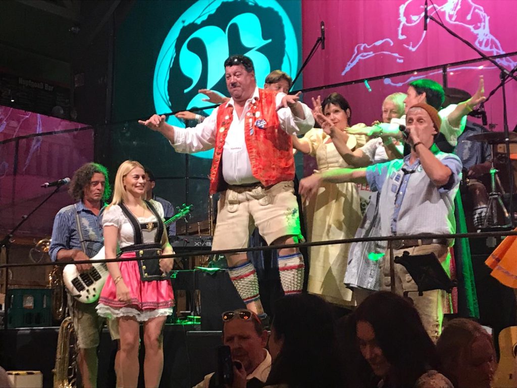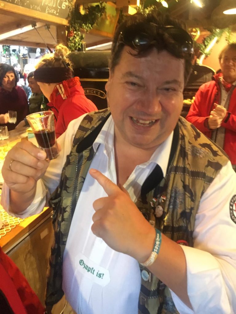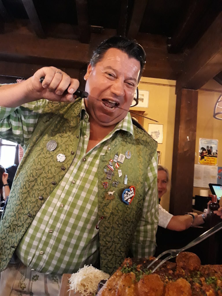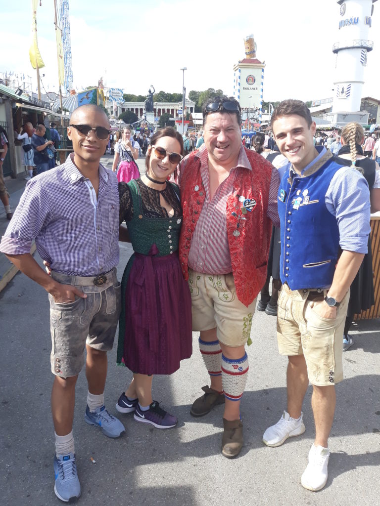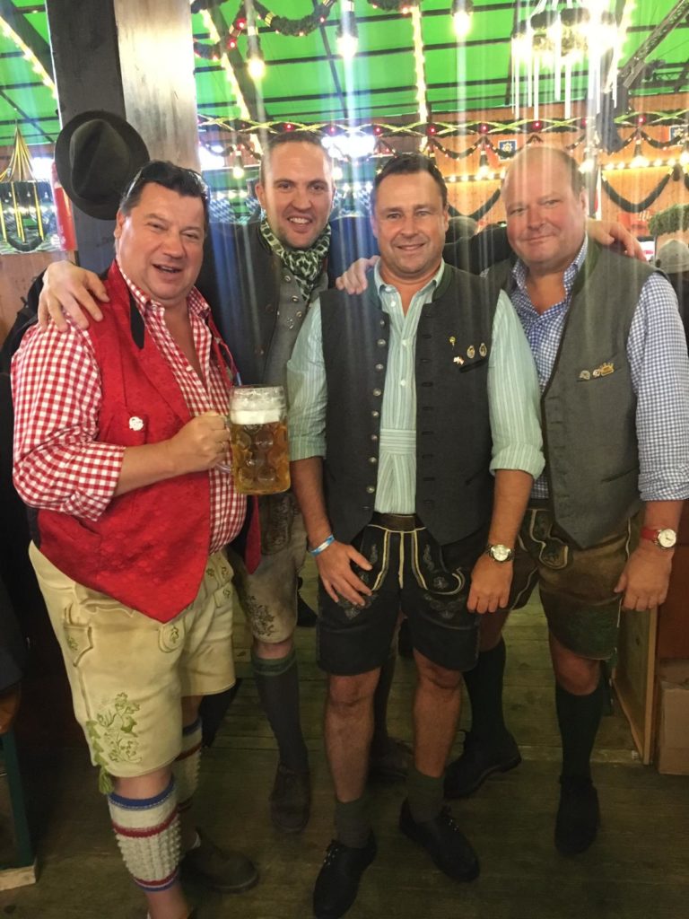 Grande Finale! Da darf natürlich mein Freund Cristian Macedonschi nicht fehlen! Er hat nach der Sicht hinter die Kulissen – sogar einen original Holzschlägel zum Anzapfen für nächstes Jahr in Rumänien erhalten! Auch mein Freund Dieter ist zum Wiesnende nochmals eingeflogen! Aufgrund des nicht so berauschenden Wetters ist die Box7 sehr gut gefüllt (Gerhard, Mira, Felix, Gersti, Andi, Tom, MO-Boys, Roli, Traute, Wilma, Norbert, Matthias, Manuel uvm.) Mittags gönn ich mir beim Heimer noch eine Abschiedsente mit Rotkraut und Knödel, danach treff ich meine Freundin Moni Gruber samt Familie im Augustiner, bei einem ‚Maßerl‘ blödeln wir was das Zeug hält!