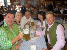 Bei perfektem Wiesnwetter gehe ich in die Augustiner Festhalle und in der Box 7 treffe ich meine heutigen Stewardessen Alexendra und Petra (diesmal in perfektem Wiesnoutfit J ). Es dauert nicht lange und hoher Besuch trifft ein, das hochwohlgeborene Prinzenpaar Pulmi & Bob und die Zeremonienmeisterin Denise – wie mi des gfreit – endlich ein Treffen in meinem Paradies. Mittags geht’s weiter zum Heimer – wie schon oft erwähnt – die weltbesten Enten – unsere gesellige Runde erweitert sich um meine Wiener Freunde Manfred, Heinz, Karli, Erich und Helmut, auch Andi (Schweizerhaus) und seine Freundin sind dabei.