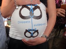 Nach der gelungen Vorstellung beim Fliegerlied, in Begleitung meiner Tochter erblicke ich im Weinzelt eine hochschwangere junge Dame ohne Dirndl ABER – wie ich finde hat sie das nicht Tracht tragen humorvoll und voll süss gelöst – eine weiße breite Schärpe mit zwei Brezen und den Worten: doppelt aufgebrezelt! …aber seht selbst….