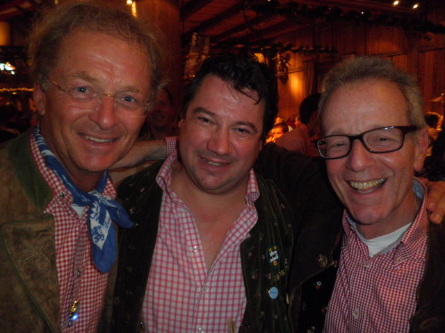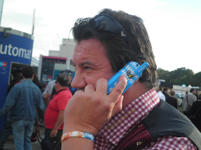 Lali, Peter Eule und Adi waren bereits gestern mit dem Zug angereist und abends waren sie mit uns im Weinzelt. Was Lali zum Schluss erlebt hat möchte ich euch auch nicht vorenthalten: Irgendwie im ganzen Getümel haben sich die 3 aus den Augen verloren. Aber mit der modernen Technik (Handy) heut zu Tage sollte das kein Problem sein, sich wieder zu finden. Also hat Peter bei Lali angerufen um sich zu erkundigen wo er sei: Lali meinte er warte genau vor der Herrentoilette. …..er wartet. Nächster Anruf von Peter ….Lali hebt ab und sagt ihm er sei noch immer vor dem WC…..warten, warten, telefonieren , warten warten. Lali denkt sich – des gibt’s doch net – wo is der Eule. Nach dem ca. 20 Anruf hat Peter dann das ‚Codewort’ gesagt – er sei im Hippodrom (er hat sich ‚unerlaubter’ Weise von der Gruppe getrennt und das Zelt gewechselt). Jetzt steht einem gemeinsamen Weg zur Unterkunft nix mehr im Wege. Denkste…als Lali beim Hippodrom ankam war Peter schon Richtung Wohnung unterwegs – und meinte er sei schon bei der Trattoria (Lokal in der Wohnstrasse) ….also geht Lali am schnellsten Weg dahin – bei Ankunft kein Peter da – wieder telefonieren. Peter ist schon ein paar hundert Meter weiter…..endlich hat er in gefunden – alleine fern der Heimat mit erheblichem Buchstabenverlust – einsam auf einen 10cm Hausvorsprung sitzend und Lali, Lali murmelnd…….! Heute wieder voll fit mit ausgezeichneter Wiesndispziplin!