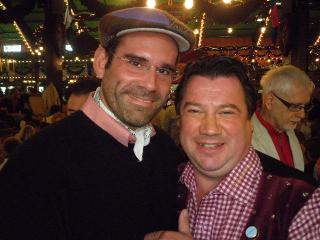 Rechtzeitig zu meinem Auftritt erschien weiterer Besuch aus der Heimat – Wiesnjungfrau Stefan er war von der Atmosphäre hier gleich überwältigt hat sich aber gleich der Wiesndisziplin gewidmet und eine saftige Stelze bestellt – sehr vorbildlich. Ich drehte noch einige Runden – um mit Freunden und Fans zu plaudern – und begab mich schlussendlich zur Sonnbühelbar – wo mein Freund Gerhard schon auf mich wartete. Gemeinsam philosphierten wir über die Wiesn – und hegten einen Wiesnschlachtplan für 2011 aus (was wir beibehalten wollen bzw. eventuell verbessern könnten) ….und schon neigt sich der vorletzte Wiesntag 2010 dem Ende entgegen…..