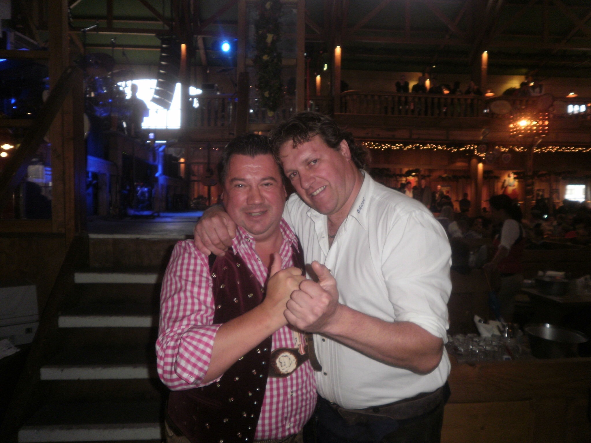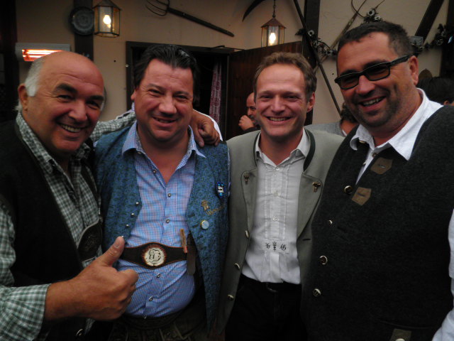 Heute lernte ich Thomas (mit mir am heutigen Foto im Anhang) aus Tirol kennen – er ist amtierender Weltmeister im Maßkrug stemmen: 21 Krüge/40 Meter.