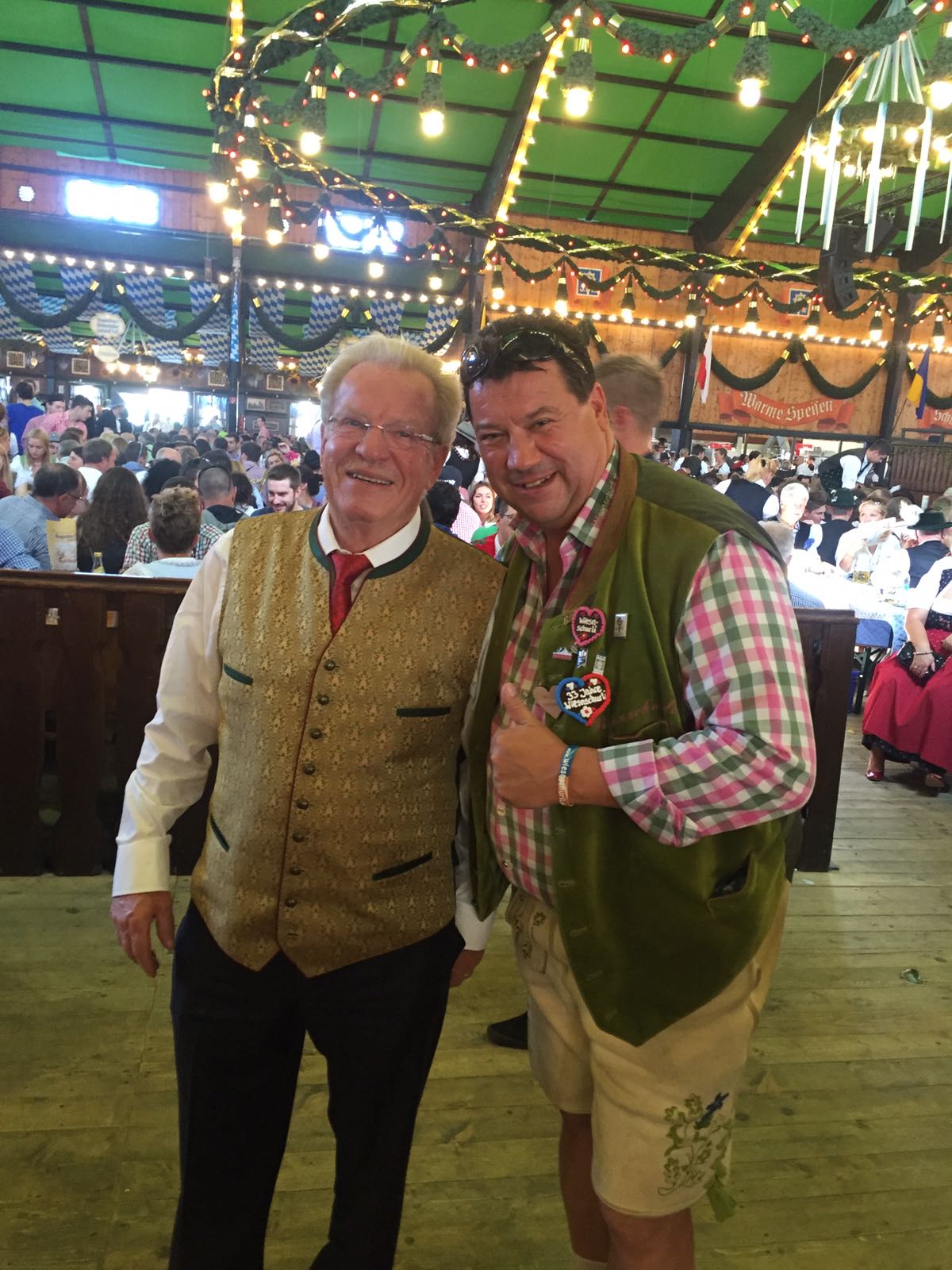 Zurück im Weinzelt zum Grande Finale treffe ich noch Ralf Hasnhüttl (Trainer von Igolstadt) und er bekommt heuer den letzten Freundschaftspin auf der Wiesn 2015. Weil ich die letzten Tage und heute überhaupt oft gefragt werde: geht’s eh no? Urlaub geht immer – und die Wiesn ist für mich Urlaub.