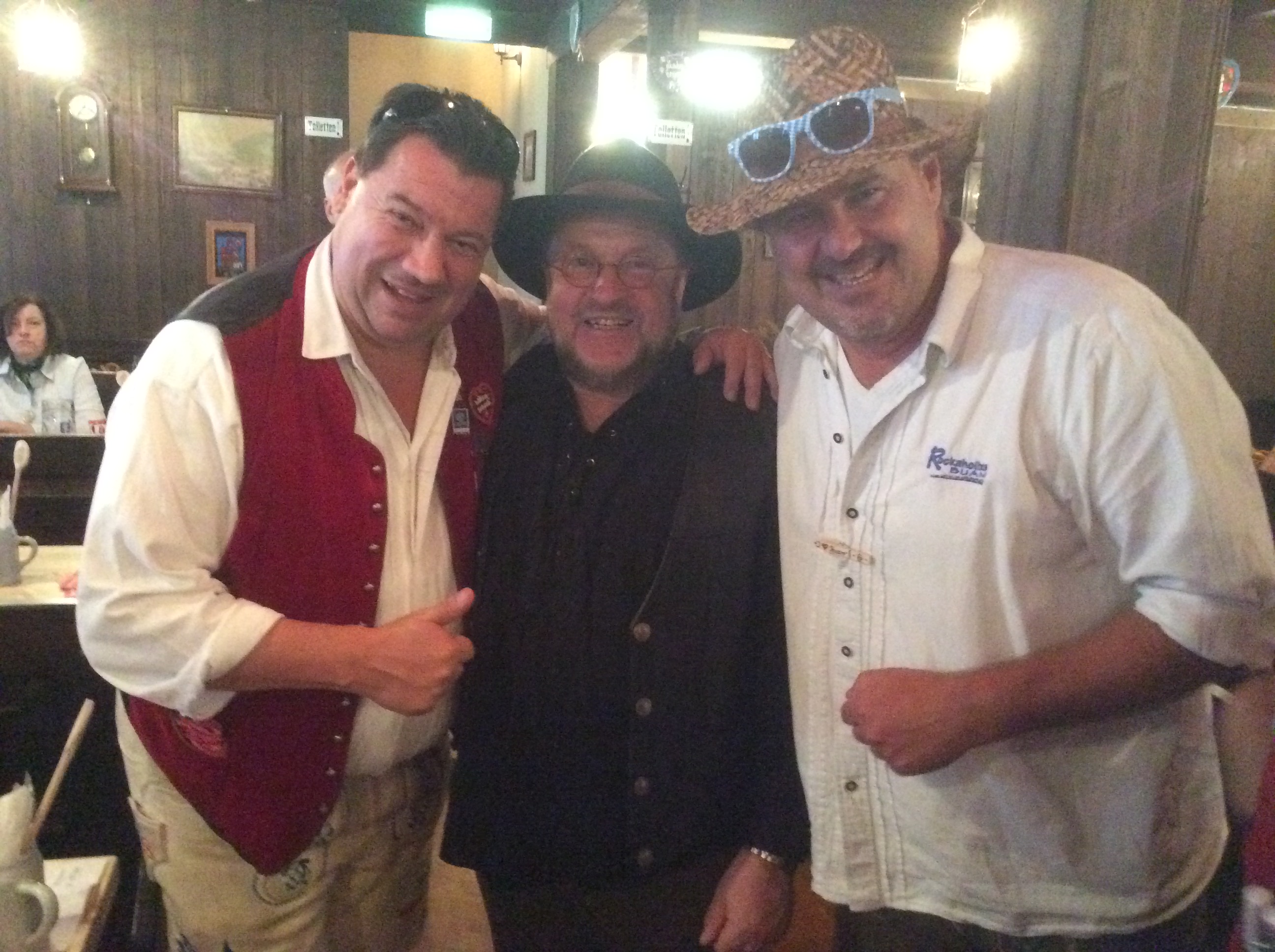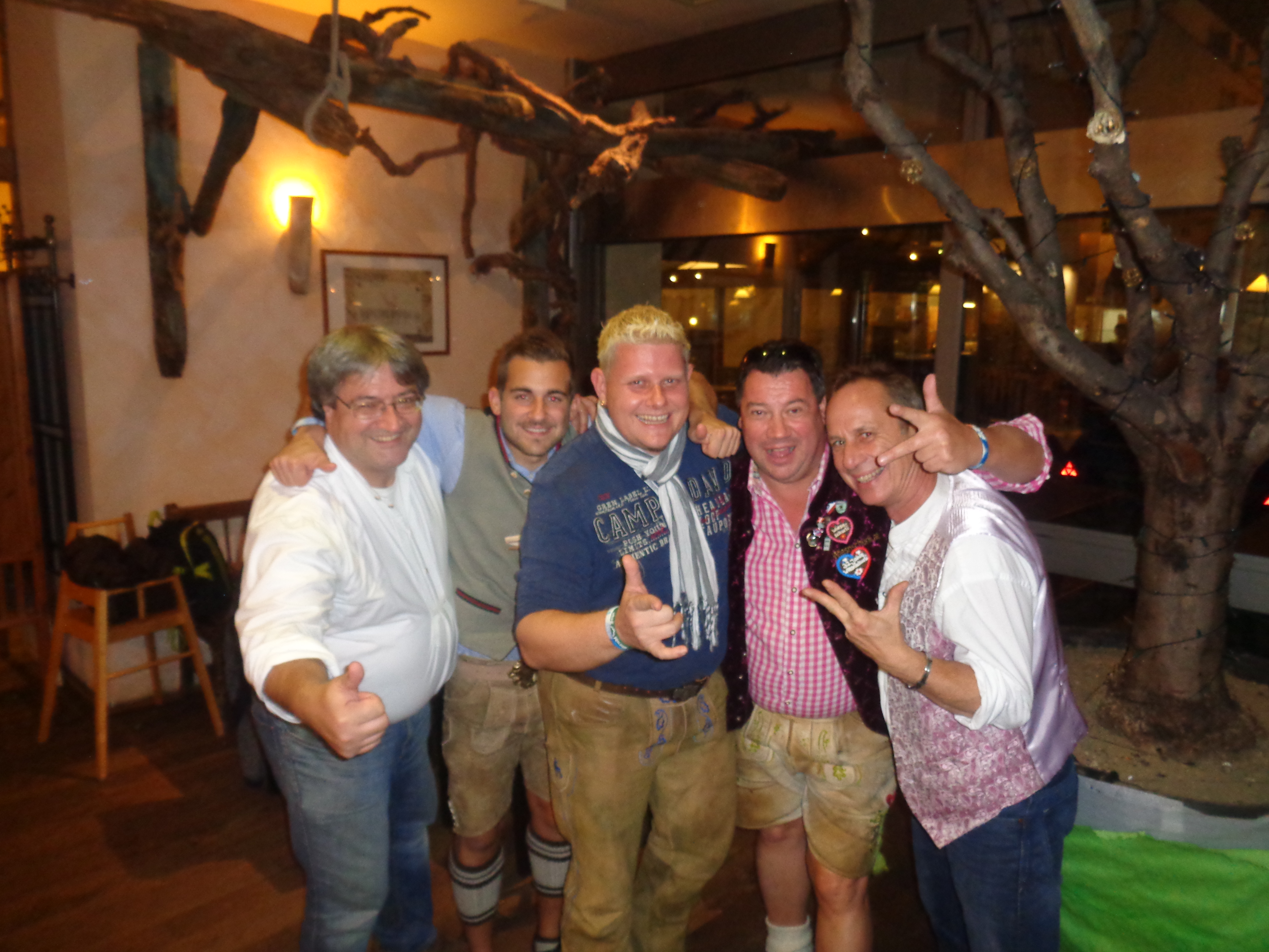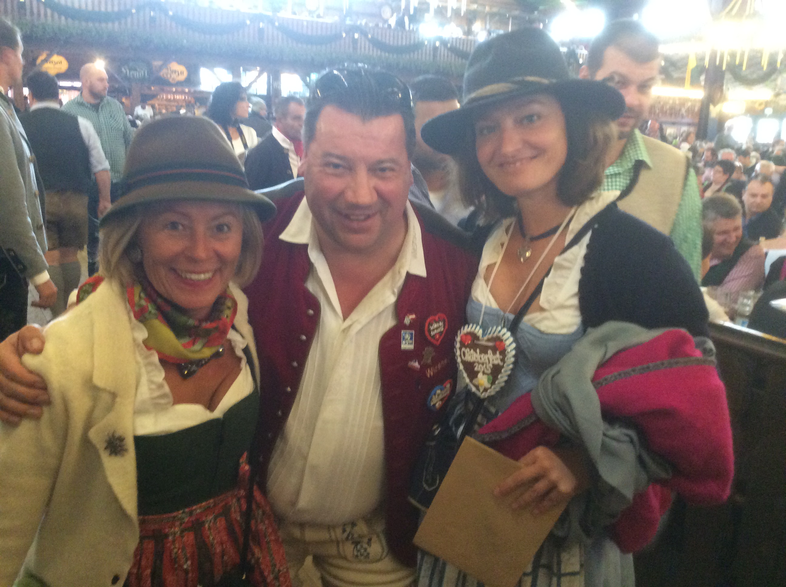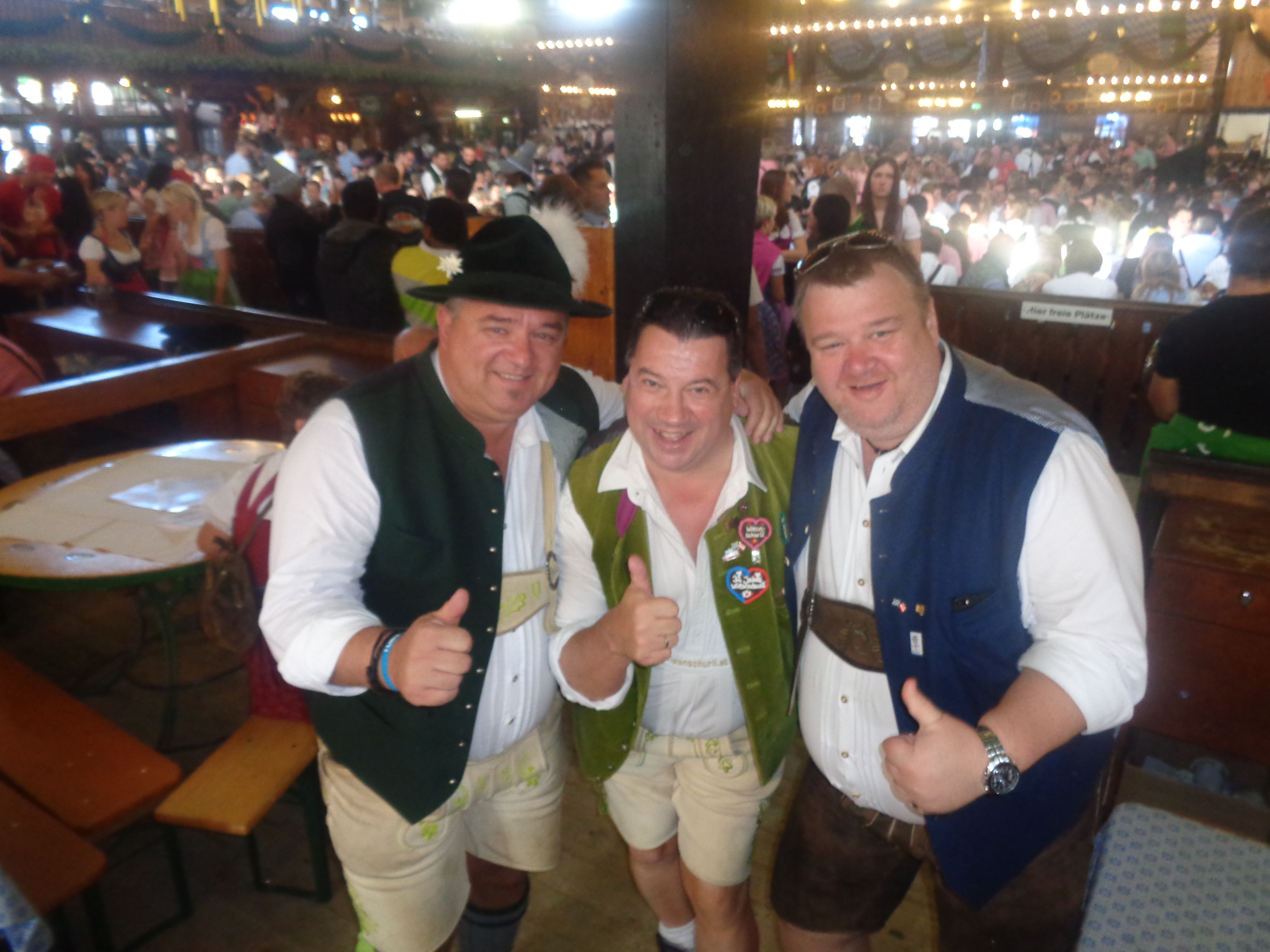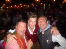 Wie heuer im Mai am Gauderfest besprochen, erscheinen meine Freunde die Zillertaler Mander Albin und Christian mit Gattinnen Alexandra und Bianca pünktlich in der Box 7. Endlich ist auch Prinzessin (meine Tochter) Sophie bei mir im Paradies an ihrer Seite Freund Markus, Fabian und Christin, Stefan und Roman alle aus meiner Heimstadt Klosterneuburg. Auch Gerli schaut auf ein kurzes Hallo bei uns vorbei. Mittagessen gibt’s wieder beim Heimer – diesmal mit zehn Ulmer Freunden die Reiner bei seinem Wiesnmarathon besuchen. Sophie und Markus begleiten ihre Freunde zum Zimmer beziehen – dies war leider erst nachmittags fertig – in der Zwischenzeit zeig ich den Tirolern die Oide Wiesn. …und weil sie Tradition und Brauchtum lieben und auch pflegen fühlen sie sich hier pudelwohl. Ich mache meine Tiroler Freunde mit Wolfgang Grünbauer (dirigiert die Münchner Oktoberfest Musikanten) im Traditionszelt bekannt. Es werden gleich Autogrammkarten ausgetauscht, und wer weiß vielleicht ergibt sich einmal ein gemeinsamer Auftritt – ihr wisst schon wegen der österreich-bayrischen Freundschaft ;). Ein kurzer Abstecher zur Bratwurst um Klaus und seine Kumpanen zu besuchen und dann geht’s endlich Richtung Weinzelt. Sophie kann’s kaum erwarten endlich mit mir wieder auf der Bühnen zu stehen (wie sagt mein Vater Otto immer: was nützt die beste Erziehung, die Kinder machen dir doch alles nach…). Heute feiern wir zwei Prämieren – erstens die gesamte Wiesnschurli Besatzung kommt aus Klosterneuburg und zweitens sind diesmal auch männliche Flugbegleiter (Stefan und Roman) mit an Board. Das ganze Spektakel wurde von Markus filmtechnisch aufgenommen und Thompson und Anne waren auch mit dem Auftritt sehr zufrieden. Reini, Petra, Lizzy und Roman schauen auch noch einen Sprung zum Verabschieden vorbei –  wünsche auch an dieser Stelle nochmals gute Heimreise.