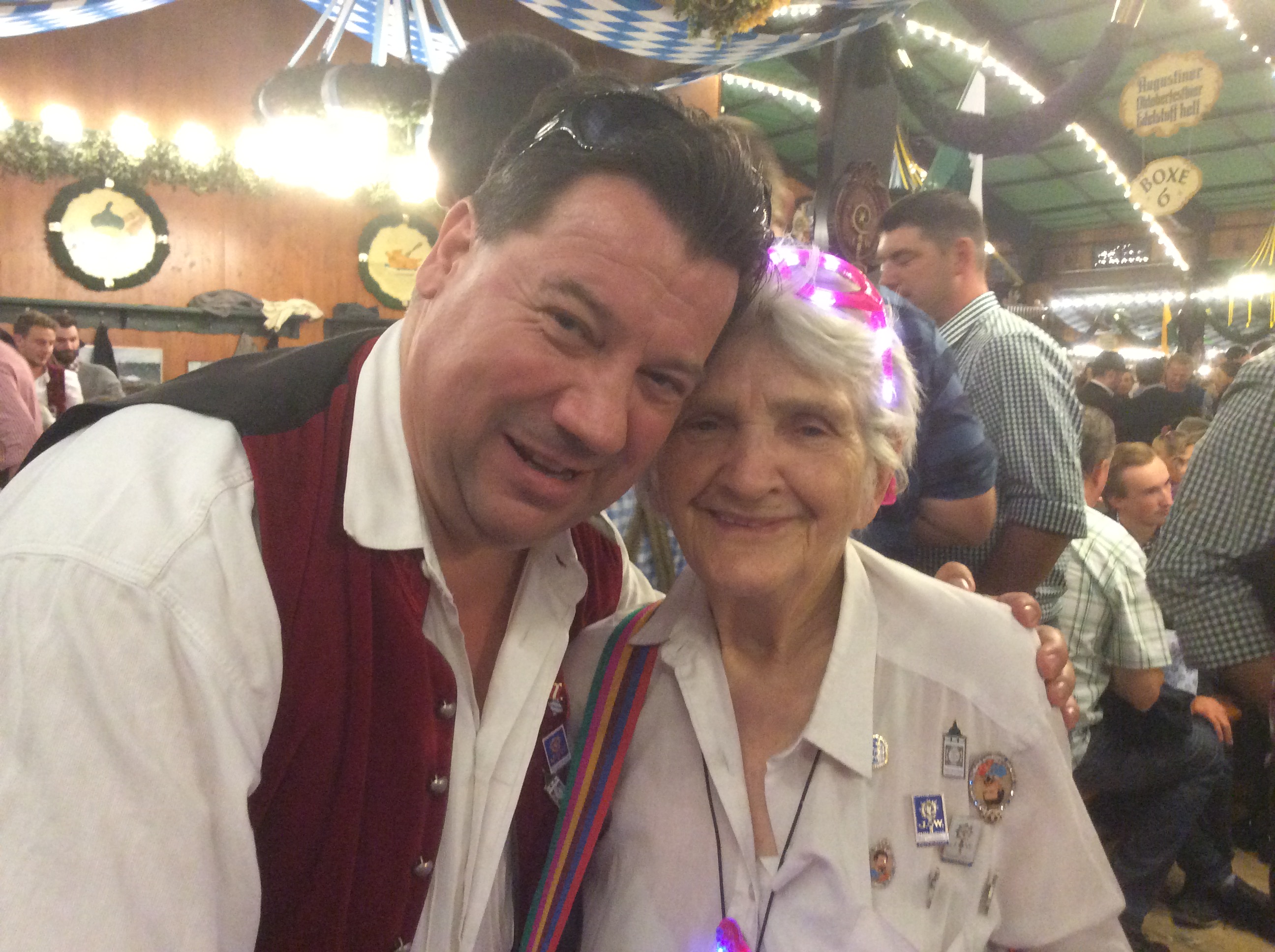 Zum Boarding bin ich selbstverständlich pünktlich auf der Bühne und Heidi und ihre Mädls unterstützen mich tanzkräftig. Danach treffe ich noch auf Georg Huber – den ich jetzt ein paar Jahre nicht mehr gesehen habe – wir kennen uns von früher wo er noch die historischen Wiesnführungen geleitet hat, er ist auch Mitbegründer des Oktoberfestes in China.