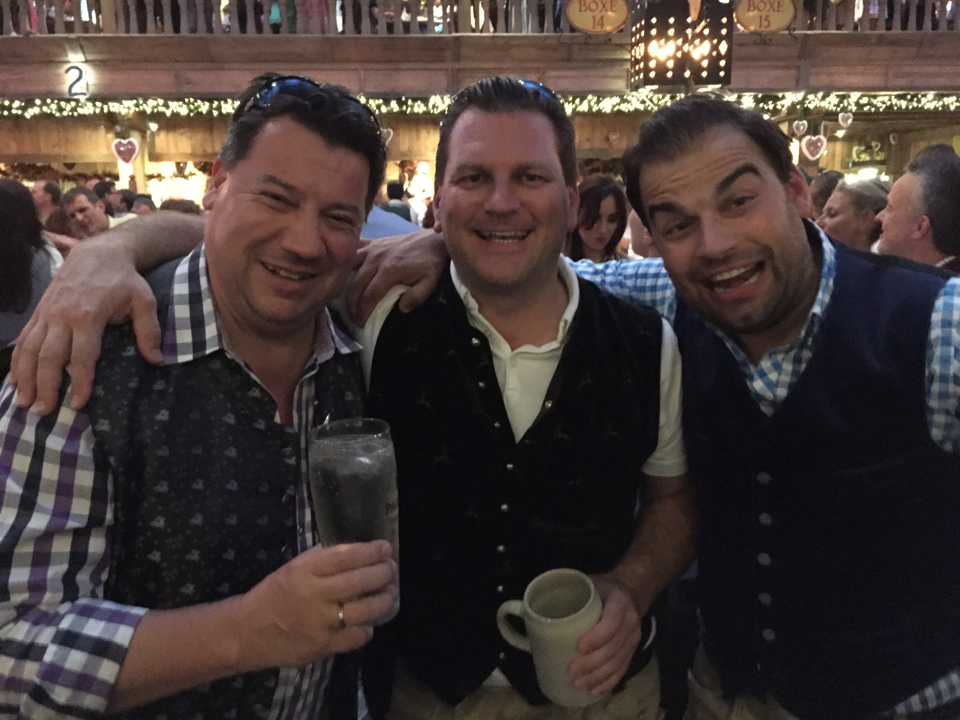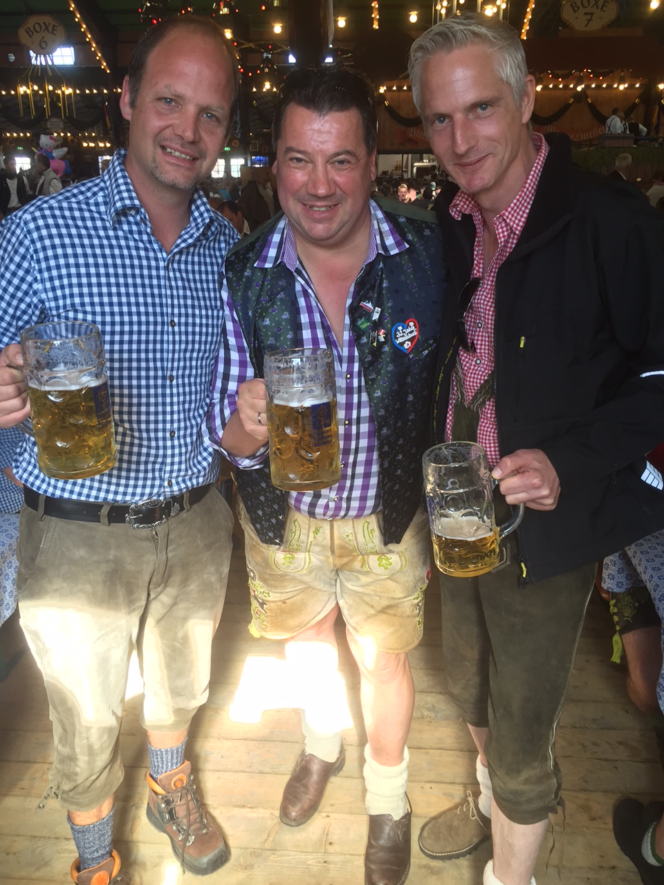 Letzter Wiesnsamstag 2015. Es ist viel los, aber deutlich weniger als erwartet. Trotzdem sind die Zelte schon Mittags geschlossen – aber das ist normal für’s Wochenende. Die üblichen Verdächtigen sind in der Box7. Ich freue mich, daß Reiner und Stoffl auch am Tag 15 durch perfekte Wiesndisziplin glänzen und sie genauso viel Freude an der Wiesn haben wie ich. Endlich auch zum Burschen Wochenende ist Charly eingetroffen, der vorige Woche schon mit Gattin und Freunden da war.