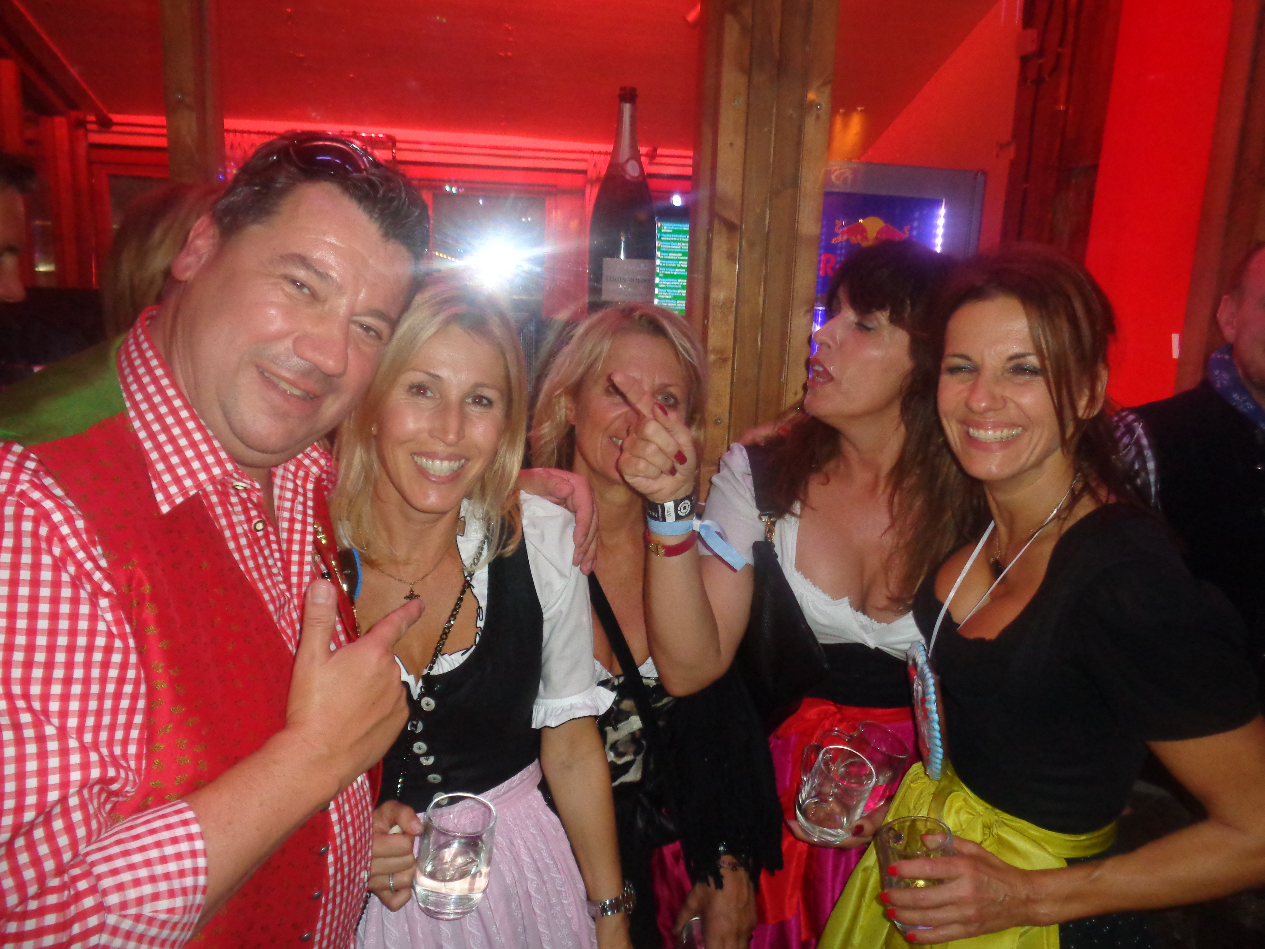 Retour in der Box sind auch Flauschi, Mira und Co beim Feiern. Ich muß die gesellige Runde aber bald wieder verlassen, denn im Weinzelt steht das Fliegerlied an. In der Radio Gong Bar freue ich mich auf ein Treffen mit Sabine Lürzer und ihren Salzburger Mädls.