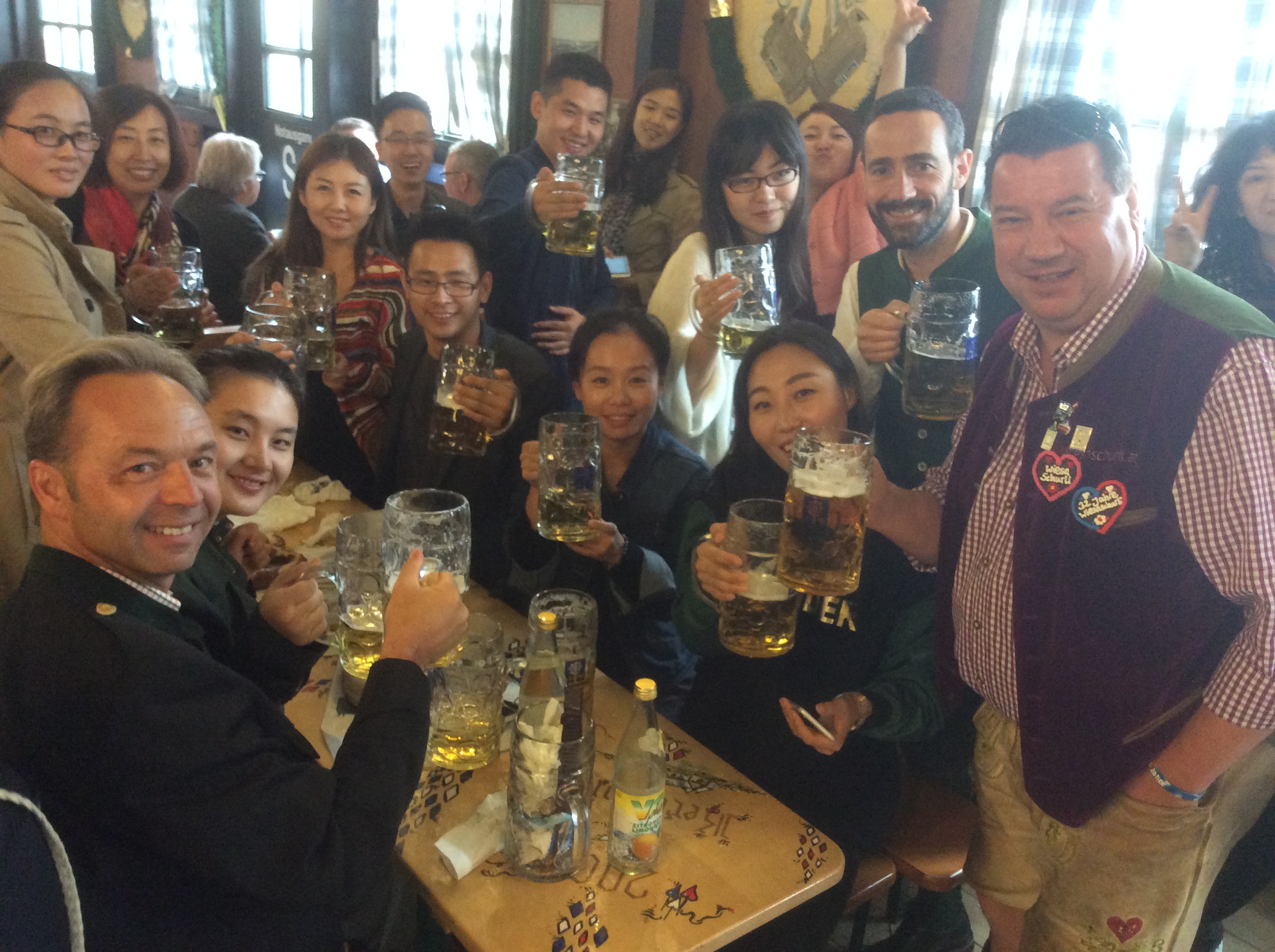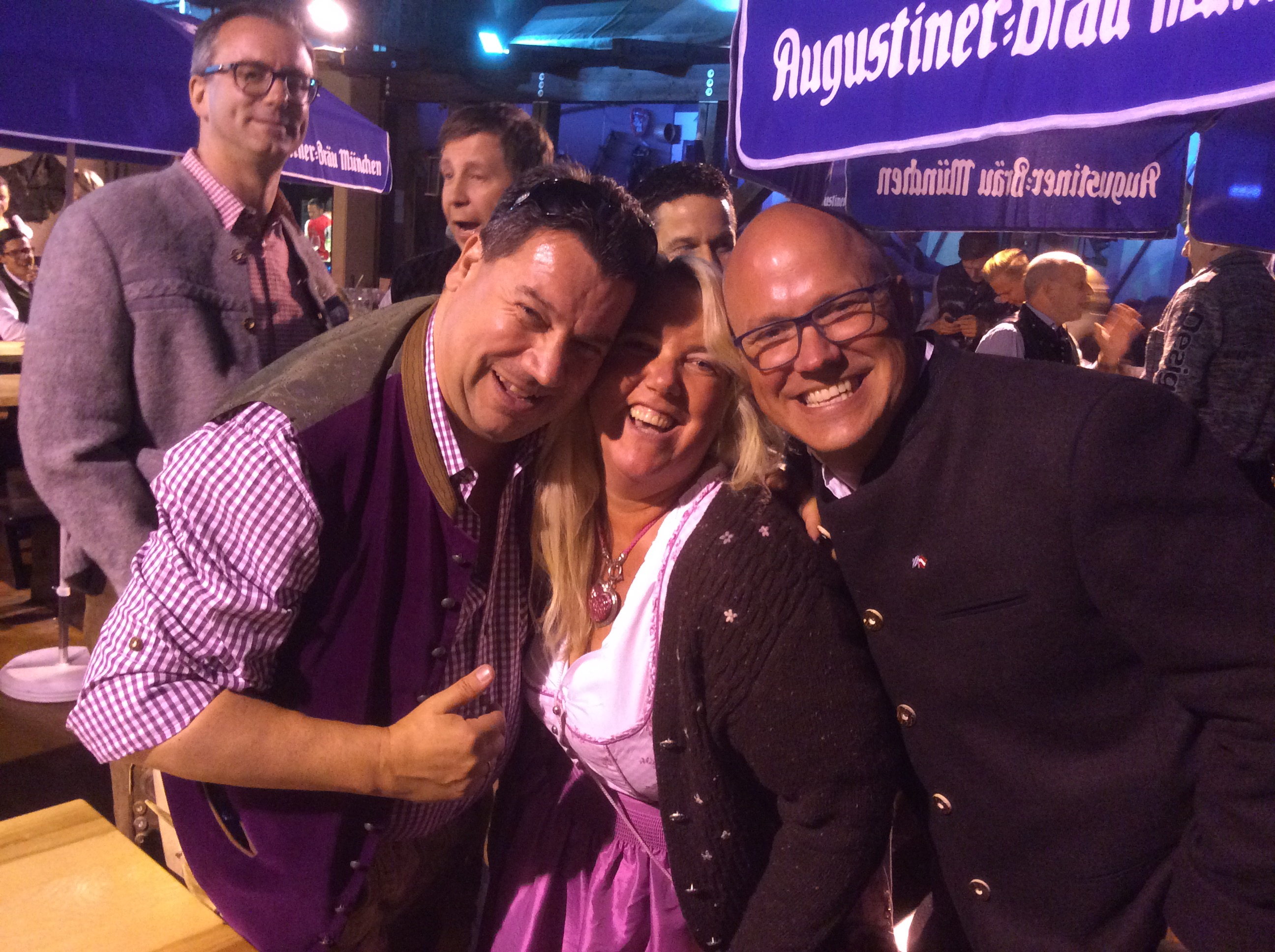 Ein muliti kultureller Frühschoppen steht an. Christan mit 20 Freunden aus China, Halla und Nimky (Freunde vom Wurthl), Camillo (Happy Birthday nochmals an dieser Stelle), Roman und der Rest der coolen Gang, brav wie immer Reiner, Stoffl und Oliver und die üblichen Verdächtigen, Gerhard (Flauschi) Kerschi und Daniel (Alois). Mittags gönn ich mir in der Box eine gefüllte Kalbsbrust – wegen der vielbesagten Wiesndisziplin. Verlasse das Augustiner Festzelt heute erst gegen 15.30 Uhr – ab 16:00 haben wir eine Reservierung im Weinzelt. Heute bebt die Hütte schon nachmittags und beim Fliegerlied heute wieder on stage mit Halla, Nimky und Natalie (Herberggeberin von Reiner und Stoffl) sind alle außer Rand und Band. Ich muss die ausgelassene Runde jedoch vorzeitig verlassen treffe noch Alex und Klaudia Busch in der Schützenfesthalle, war schon neugierig das Zelt hat heuer ein neues Erscheinungsbild. Mehr Holz, offener – einfach gut gelungen. Dann zieht’s mich weiter auf die Oide Wiesn wo ich mit meinem Münchner/Kölner Freund Koarli einen sensationellen Abend im Herzkasperlezlt verbringend darf. Plötzlich und unerwartet bekommen wir Besuch von Tanja (Präsidentin vom Karnevalsverein ‚Schmuckstückchen‘). Sie hatte eine Firmeneinladung in einem anderen Zelt -und ihre Erwartungshaltung puncto Stimmung wurde bei weitem nicht erfüllt – daher die beste Entscheidung des Abends – den Rest mit uns zu verbringen. Gemeinsam wandern wir Richtung Bratwurst – und ALLE sind da bei bester Feierlaune und toller Stimmung. Flauschi und Pauli, Kerschi, die Witti’s, Martina und Lugi, Klaus, Reiner, Stoffl, Oliver uws. Nach Sperrstunden wechseln ein paar von uns nochmals in Weinzelt – und Tanja ist nun endgültig mit der Stimmung auf der Wiesn versöhnt. Sie bittet mich sogar – ihr fürs nächste Jahr bei einer Reservierung für ihre Kölner Mädls behilflich zu sein. So mag ich das. Was ich immer sag – die Wiesn ist die größte Party der Welt – du musst nur wissen wann du wo sein musst – und dieses Wissen hab ich mir in den letzten 32 Jahren angeeignet und freue mich immer dies mit Freunden teilen zu können.