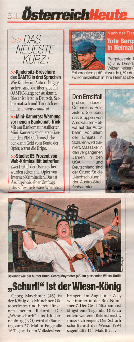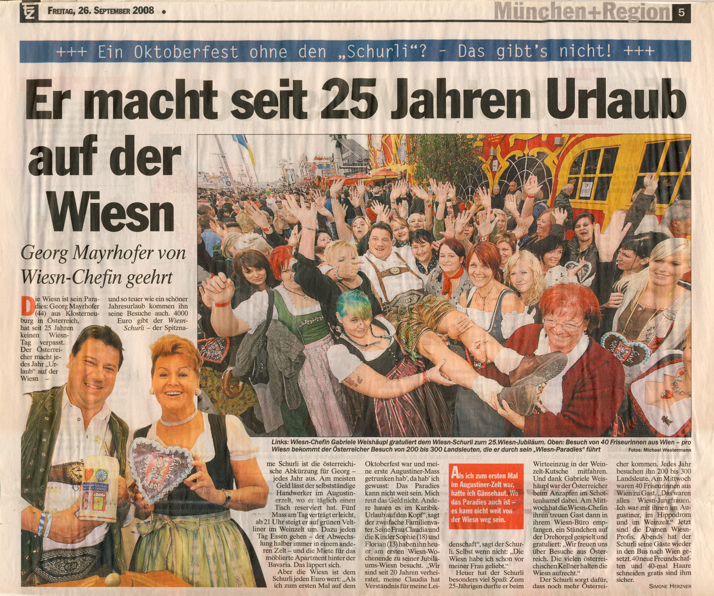 Süddeutsche Zeitung – 25 Jahre Wiesnschurli – 27./28. September 2008